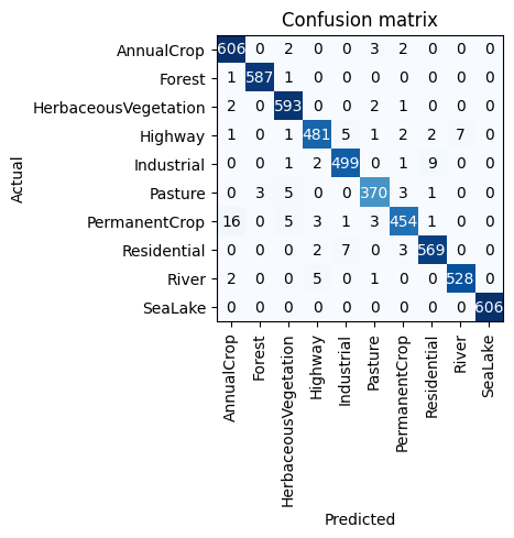 interp = fv.ClassificationInterpretation.from_learner(learn)interp.plot_confusion_matrix()